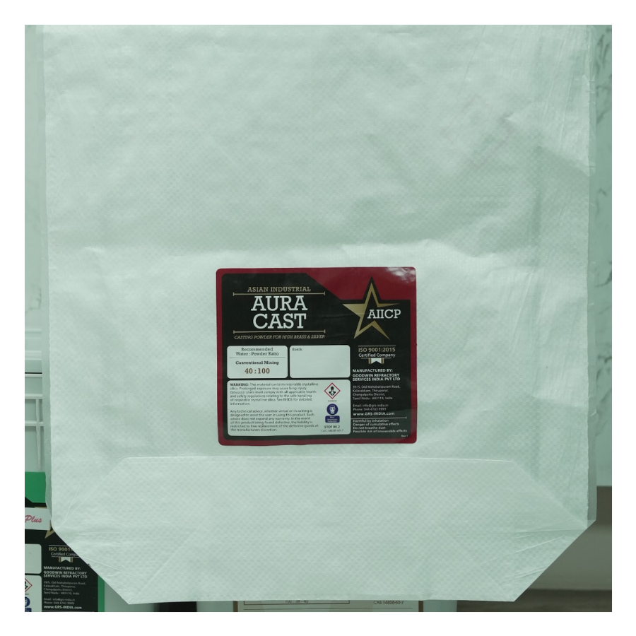 This product is "ASIAN INDUSTRIAL AURA CAST", a Casting Powder for High Brass & Silver. The recommended Conventional Mixing Water:Powder Ratio is 40:100.